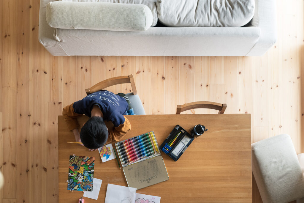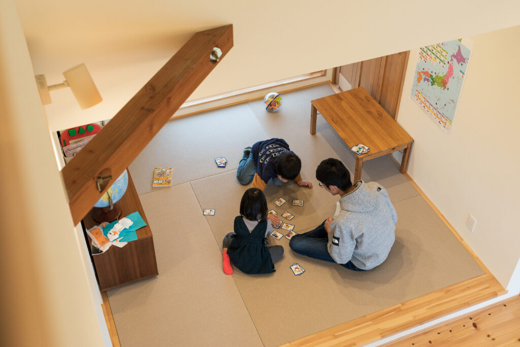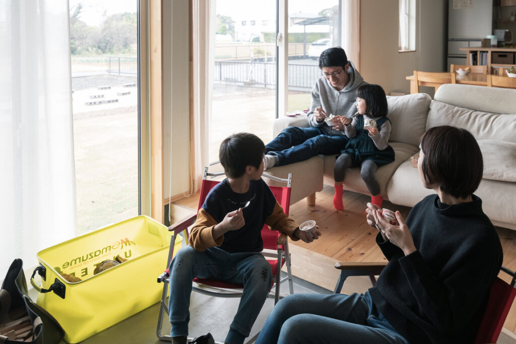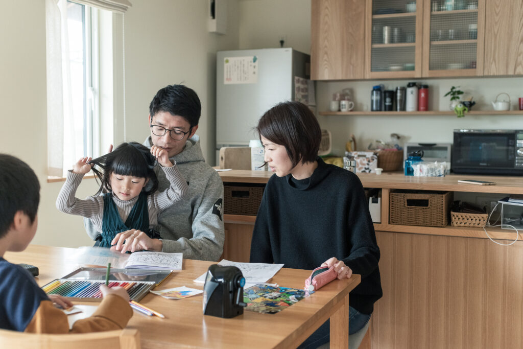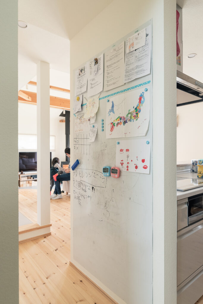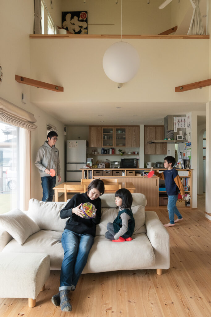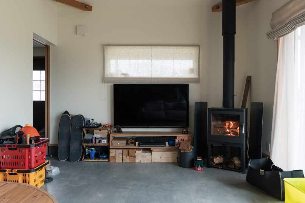「この家で暮らし始めてから、子どもたちが穏やかになりました。室内でも力いっぱい遊べるし、冬は暖炉の炎がホッとさせるから」と奥さま。