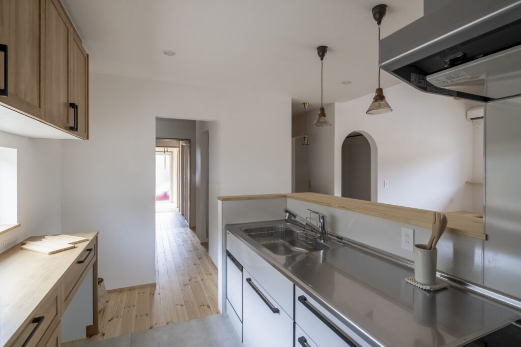 LDから見えるキッチンの棚と、少… -