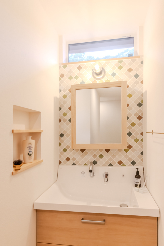 お気に入りのタイルで、洗面を作業… -